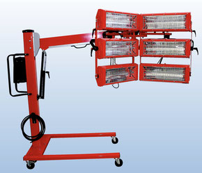 Die IR Strahler der 1600 Serie sind als kurz- oder Mittelwelle verfügbar. Die Strahler bestehen aus 6 Paneelen mit je einer Röhren (Kurzwelle je 1000 Watt / Mittelwelle je 800 Watt).