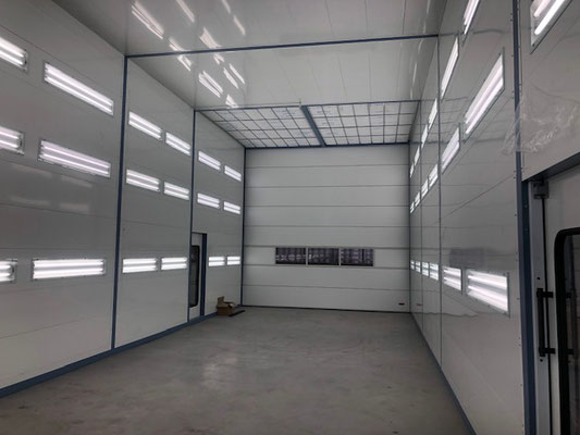 Das mehrstufige Beleuchtungssystem garantiert eine optimale Menge von diffusem Licht in der Lackierkabine.