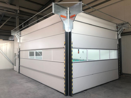 Bei unseren LKW- bzw Industrieanlagen sind mehreren Lösungen von Toren möglich. Sowohl am Ende als auch in der Mitte der Lackierkabine mit manueller oder motorisierter Betätigung